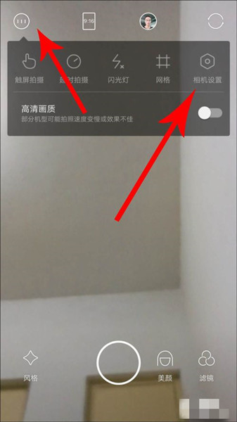 1、打開輕顏相機(jī),點(diǎn)擊如下圖所示的左上角,點(diǎn)開相機(jī)設(shè)置