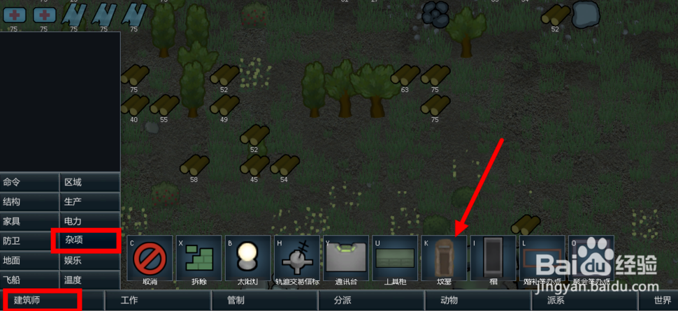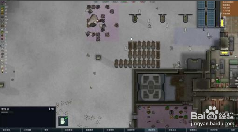 2.刪掉開局的附近的倉庫區(qū)還有垃圾堆放區(qū),還有3個(gè)睡眠點(diǎn)(命令,刪除,點(diǎn)床),改在地洞口附近放睡眠點(diǎn)(湊合先睡)。