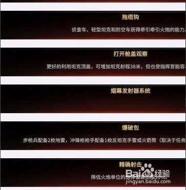 每個(gè)陣營(yíng)的三個(gè)領(lǐng)袖能力基本都一樣的,第一個(gè)領(lǐng)袖提供步兵加成,第二個(gè)提供坦克加成,第三個(gè)提供支援單位,比如修理車(chē)回血、士兵更多的彈藥等等。
