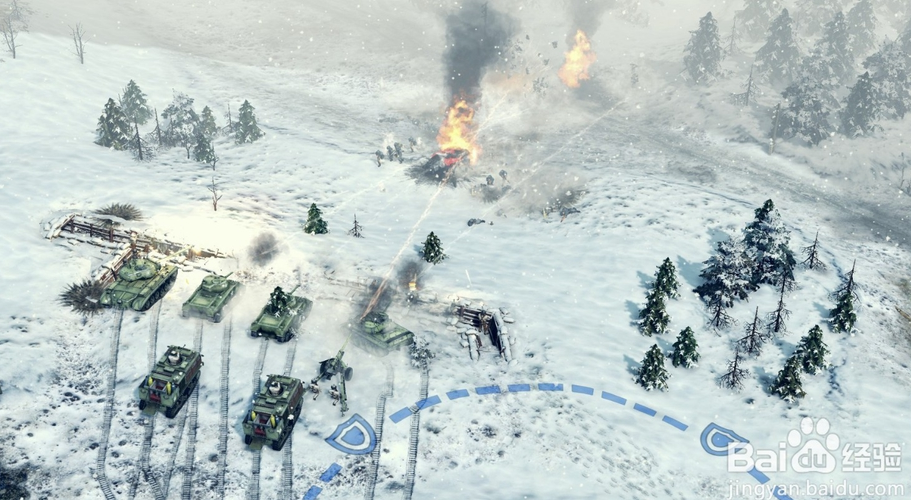 想要快速通過(guò)河流,需要運(yùn)用修理車(chē)搭建一座浮橋出來(lái),在冰面上戰(zhàn)斗可以通過(guò)炸毀冰面讓冰面上的單位沉入湖中。