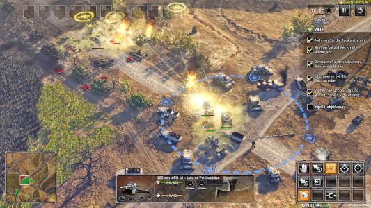 作為一款RTS,游戲的核心玩法和常規(guī)RTS不太一樣的是,沒(méi)有前期發(fā)育時(shí)間,一開(kāi)始交給你的單位數(shù)量是固定的,比如固定數(shù)量的坦克、補(bǔ)給車(chē)、士兵等等。