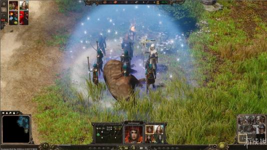 左下方小地圖黑色迷霧代表尚未探索過的區(qū)域,小地圖上會(huì)有當(dāng)前主、支線任務(wù)點(diǎn)的標(biāo)記(感嘆號(hào)),可命令英雄們前往感嘆號(hào)位置觸發(fā)戰(zhàn)役劇情。