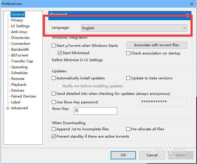 utorrent pc版怎么設(shè)置中文?utorrent設(shè)置成中文的方法教程: