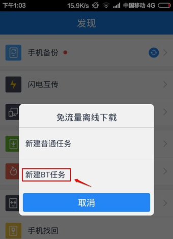免流量離線下載中選擇這里的新建BT任務(wù)。