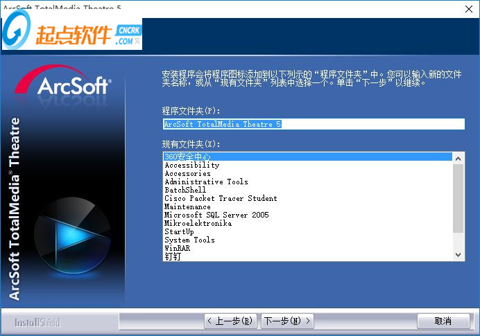 5、可以對(duì)程序的文件夾進(jìn)行快速的選擇,默認(rèn)位置“ArcSoft TotalMedia Theatre 5”,點(diǎn)擊下一步;