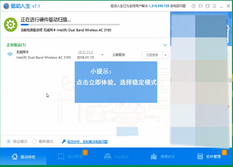 首先打開驅(qū)動人生,點擊“立即體驗”,選擇“穩(wěn)定模式”。