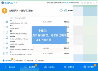 最后點擊“驅(qū)動管理”,可以備份驅(qū)動以備不時之需。