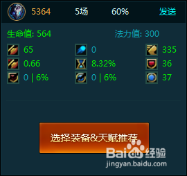 在LOL英雄選擇界面中,當(dāng)選中并使用其中一名英雄后,將在桌面右上角顯示對(duì)應(yīng)英雄的相關(guān)屬性,同時(shí)還提供“裝備和天賦推薦”功能。