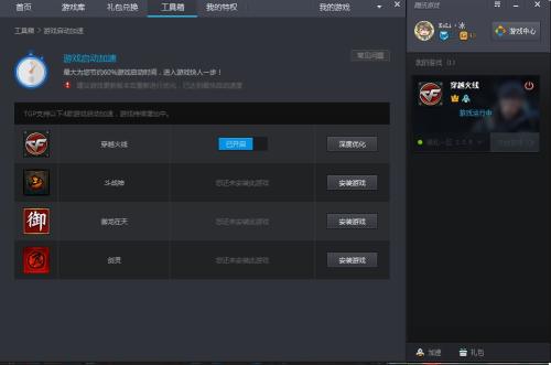 安裝完成可開始使用TGP騰訊游戲客戶端