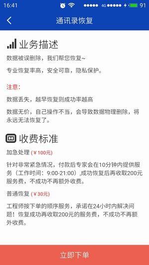 1、加急通道,專家服務(wù):針對(duì)數(shù)據(jù)非常重要緊急的情況,付款后,恢復(fù)專家會(huì)在10分鐘內(nèi)提供服務(wù),恢復(fù)成功率高!