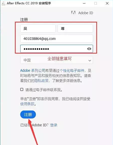 出現(xiàn)登錄選框的時候,點擊下方箭頭所指的獲取Adobe ID。(如果你安裝沒有出現(xiàn)這個,可以直接進行下一步) 如圖三。