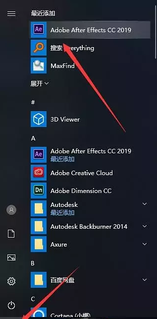 點擊電腦左下角的開始菜單,鼠標(biāo)右點擊AE2019,打開文件所在位置。(你也可以右擊打開文件所在位置,然后復(fù)制一個快捷方式到桌面) 如圖九。