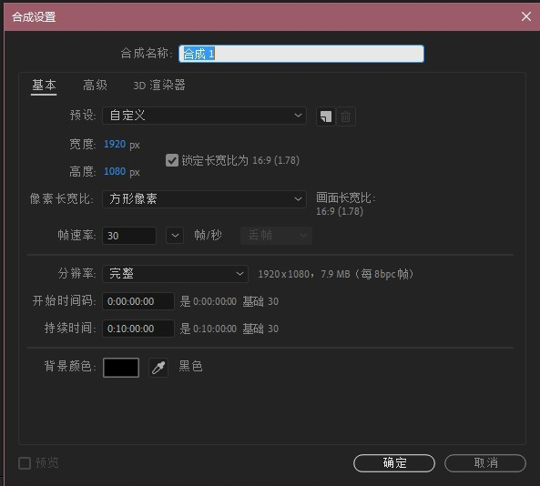 設(shè)置合成圖像解析度為Custom Ctrl+ Alt+J