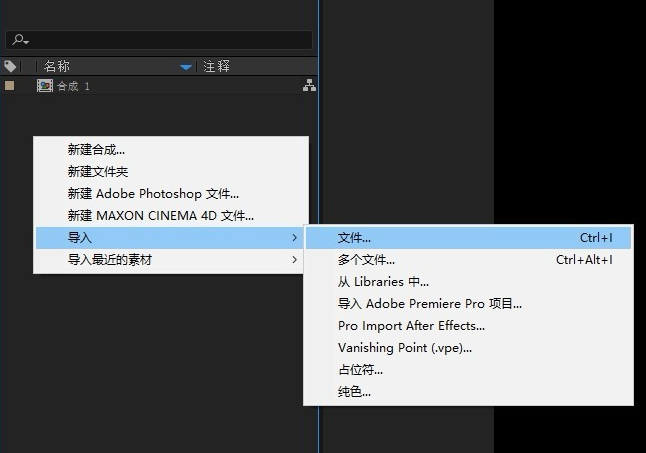 在左側(cè)項目面板中,選擇導(dǎo)入文件和素材