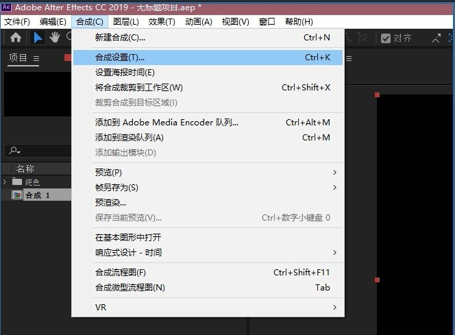 點擊頁面左上角合成中的設(shè)置