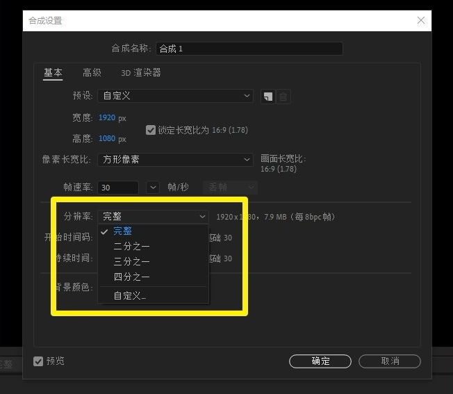 設(shè)置合成圖像解析度為full Ctrl+ J