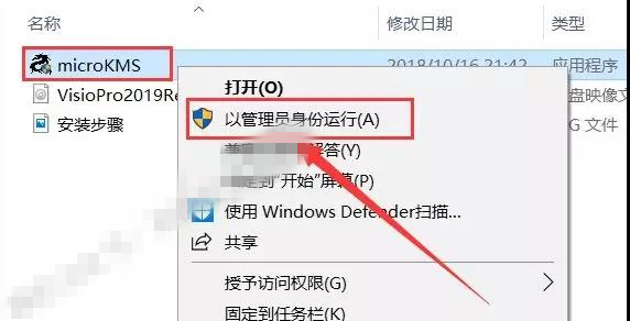 8.返回解壓文件夾選中【microKMS】可執(zhí)行文件,鼠標(biāo)右擊選擇【以管理員身份運行】。