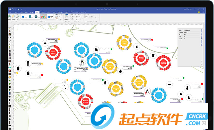 使用實際可視化對象傳達實時數(shù)據(jù)。在 Visio 中或者利用 Office 365* 應(yīng)用和服務(wù),將形狀和圖表鏈接到常用源文件,并通過應(yīng)用的形狀格式設(shè)置,自動更新以反映基礎(chǔ)數(shù)據(jù)更改。