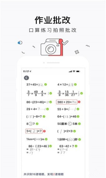 小學(xué)生口算拍照批改工具,用手機(jī)拍照口算題或者上傳口算題照片,一秒就能找到錯(cuò)題。支持多種口算題型,幫助家長(zhǎng)快速發(fā)現(xiàn)孩子的錯(cuò)題,針對(duì)性輔導(dǎo)孩子。