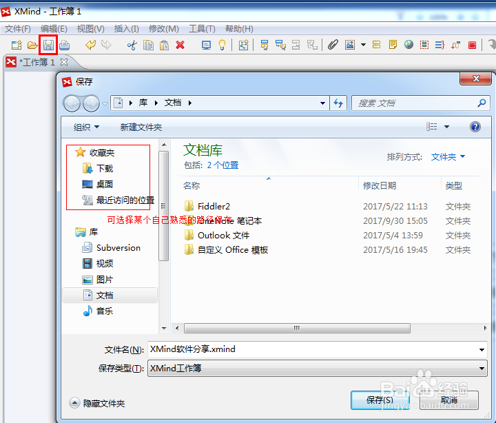 保存按鈕默認(rèn)保存格式為”.Xmind”的后綴名,推薦先保存默認(rèn),因為后面可以繼續(xù)編輯和修改。