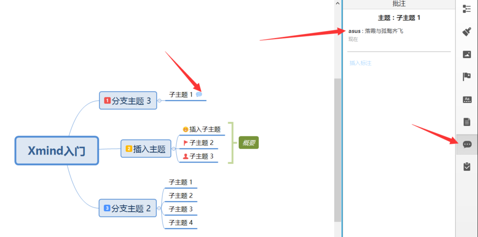Xmind8還支持批注功能,將所需要的、過長的信息加入到批注功能之中。