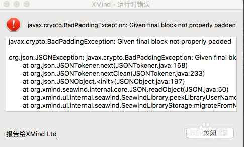 Mac版下XMind保存報錯的提示是這個樣子的: