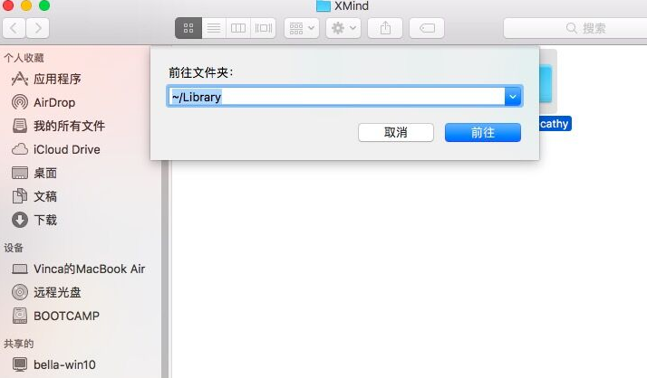 在彈出的對話框中輸入“~/Library”,點擊前往;