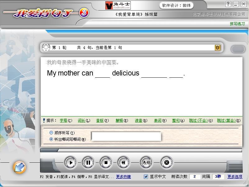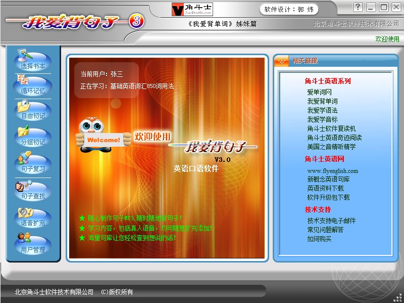《我愛背句子3》提供主要的句子學習功能、MP3制作功能以及句庫擴充功能。