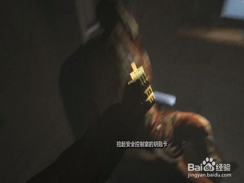 然后根據(jù)記憶中的道路,回到之前從樓梯上掉下來的地方,接著走右手邊的通道,找到第二個大門,靠上去用保安身上獲得的鑰匙卡打開保安室大門,就可以保安室里面搞事情了。