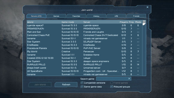 玩家可以調(diào)整【線上模式選項(xiàng)】,其中包括:私人(只能自己邀請(qǐng)朋友或玩家,其他人無(wú)法自行進(jìn)入存檔),線下(其他玩家無(wú)法進(jìn)入存檔),朋友(只有steam好友可以自由進(jìn)出存檔),以及公開(誰(shuí)都可以進(jìn)入你的游戲),一個(gè)房間最多可以容納16人。是否開啟方塊限制(如果開啟則每個(gè)人只能制造有限數(shù)量的方塊)。