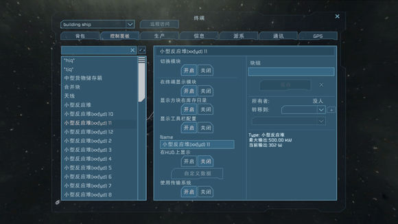 注:這里有一個(gè)歸屬權(quán)問題,飛船的權(quán)必須是“我”才能進(jìn)行連接。歸屬權(quán)可以在控制板菜單的右側(cè)找到,可以選擇歸屬權(quán)以及是否分享給自己的派系。創(chuàng)造時(shí)建造的所有物品的所有權(quán)都默認(rèn)為“沒人”,需要時(shí)記得修改。