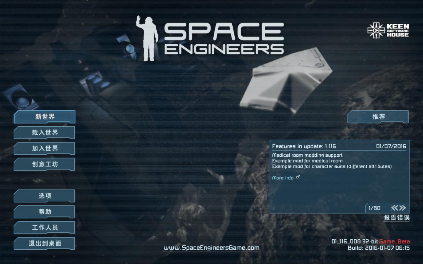 這個(gè)就是太空工程師中文版游戲的主界面了