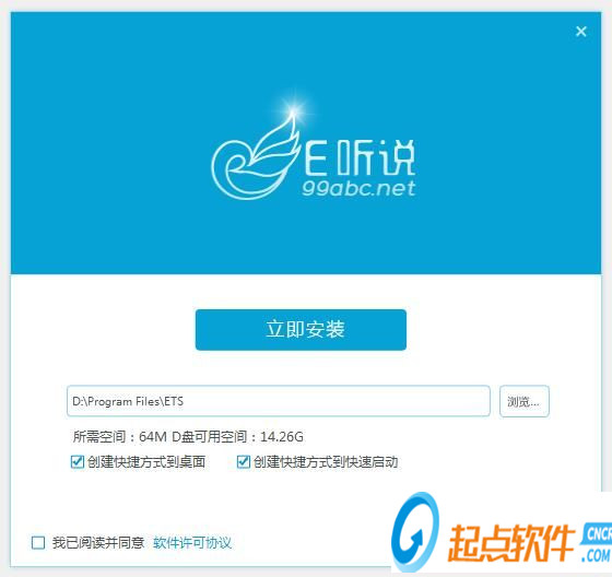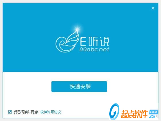 進(jìn)入啟明e聽說的安裝向?qū)?。安裝向?qū)J(rèn)為我們勾選了我已閱讀并同意軟件許可協(xié)議。點(diǎn)擊快速安裝就可以開始安裝軟件;
