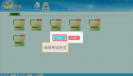 模擬考試參照正式考試流程設(shè)計(jì),高度模仿正式聽說考試,嚴(yán)格按照考試流程進(jìn)行。點(diǎn)擊“模擬考試”,點(diǎn)擊任意一套試題,并進(jìn)行考試模式選擇。練習(xí)模式在考試過程中,可以點(diǎn)擊“暫?!卑粹o暫??荚?,也可以點(diǎn)擊“跳過”按鈕,進(jìn)入下一題??荚嚹J饺虩o暫停。