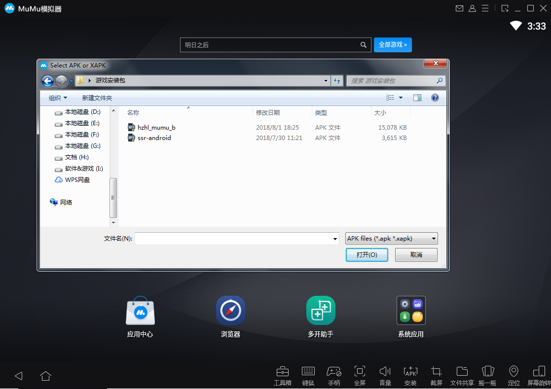 【安裝】——可將下載在電腦里,APP后綴為apk的安裝文件安裝進模擬器,在應用中心沒有搜索到軟件時,可通過這種方式安裝在模擬器中。