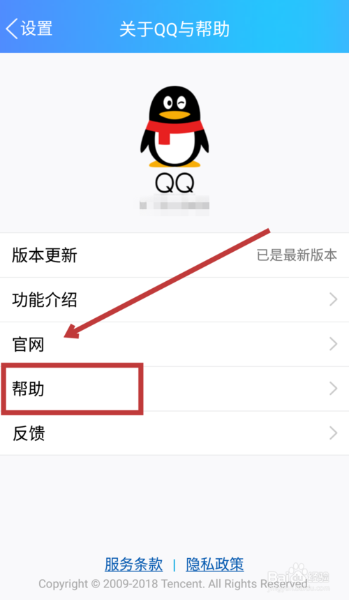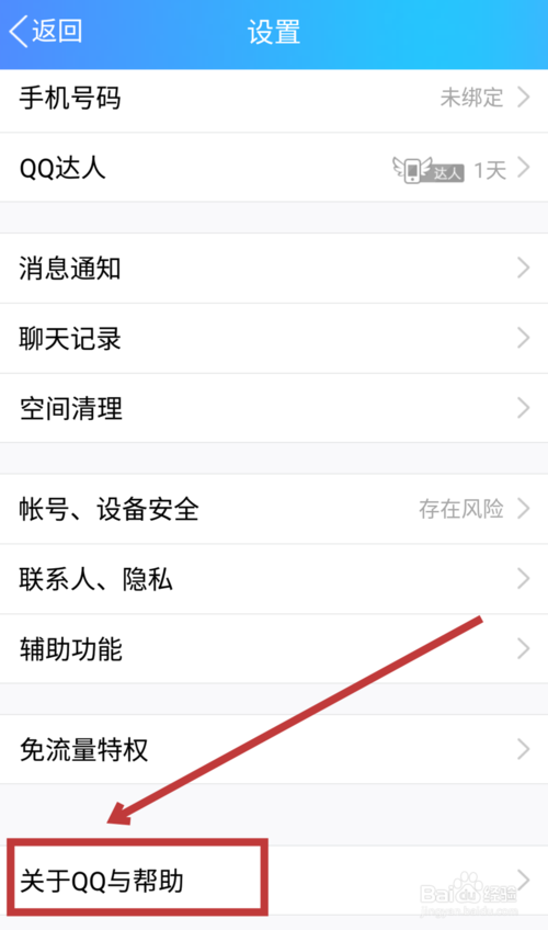 2、然后在設(shè)置的最下面找到“關(guān)于QQ與幫助”,如圖所示。