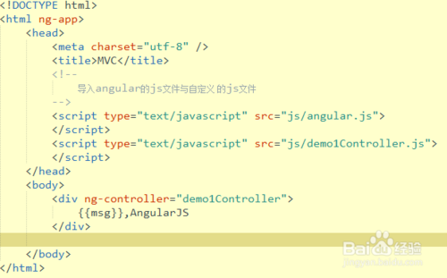 2.下面很簡單了,就是引入angularjs包了,這個(gè)大家都會,小編引入的是壓縮版本的,如下圖所示。