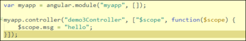 在上述代碼中,我在js文件中聲明了一個(gè)全局的函數(shù)demo1Controller,在js的開發(fā)中是不建議定義全局的函數(shù)或變量的,它污染了全局空間,這種編碼是不”優(yōu)雅”的。在angular中我可以使用module(模塊化來解決這個(gè)問題)