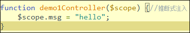 如果沒有明確的聲明,AngularJS會假定參數(shù)名稱就是依賴的名稱。因此,它會在內(nèi)部調(diào)用函數(shù)對象的toString()方法,分析并提取出函數(shù)參數(shù)列表,然后通過$injector將這些參數(shù)注入進(jìn)對象實(shí)例。