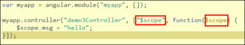 在上述代碼中,大家一定有一個(gè)疑問,就是我在js代碼中使用的$scope它是由誰創(chuàng)建的,為什么我可以使用它?其實(shí)就全是依靠angular提供的依賴注入來完成的,依賴注入的概念我在學(xué)習(xí)spring中已經(jīng)接觸過,不過在前端開發(fā)中,這是我第一次使用依賴注入。