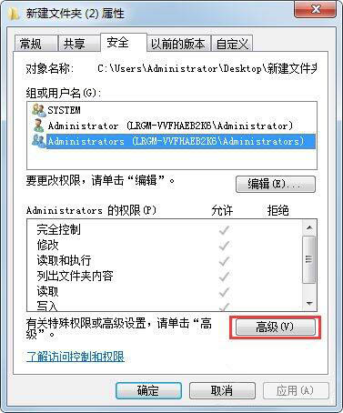 3、在“安全”選項(xiàng)卡中點(diǎn)擊“組或用戶名”下方的Administrators選項(xiàng);如圖所示: