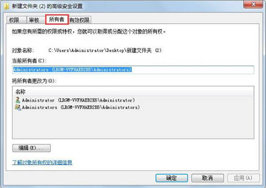 5、在“高級(jí)安全設(shè)置”窗口中單擊“所有者”選項(xiàng);如圖所示: