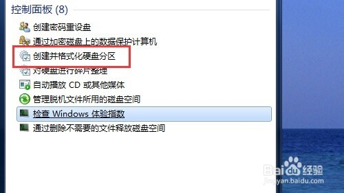 就會(huì)在上方看到如圖所示搜索結(jié)果,點(diǎn)擊“創(chuàng)建并格式化磁盤分區(qū)”。