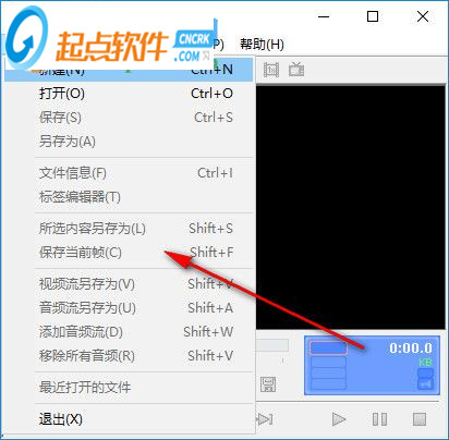 1、菜單功能:文件信息、標(biāo)簽編輯器、所選內(nèi)容另存為、保存當(dāng)前幀、視頻流另存為、音頻流另存為、添加音頻流、移除所有音頻