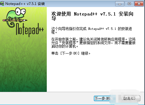 3、雙擊打開(kāi)后將彈出安裝界面:在下圖中我們大概閱讀文字信息后可以選擇直接單擊【下一步】按鈕開(kāi)始安裝。