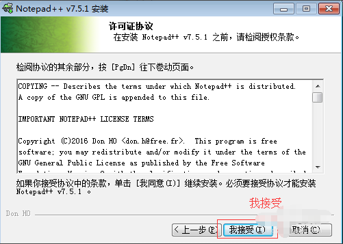 4、開(kāi)始后后將出現(xiàn)下圖內(nèi)容:該頁(yè)面信息是該軟件的安裝協(xié)議,建議小伙伴大概閱讀了解下載,因?yàn)槟闳缦胍^續(xù)安裝是必須同意該協(xié)議內(nèi)容信息的。然后單擊【我接受】繼續(xù)安裝