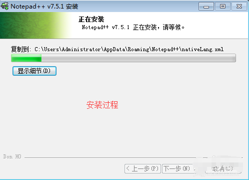 8、所有信息都已設(shè)置好后,將進(jìn)入Notepad++的安裝進(jìn)度條,請(qǐng)耐心等待。