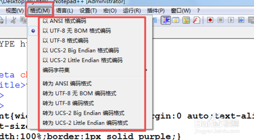 5.若是要設(shè)置文件的編碼格式則點(diǎn)擊菜單中的‘格式’然后根據(jù)需要選擇具體的編碼。