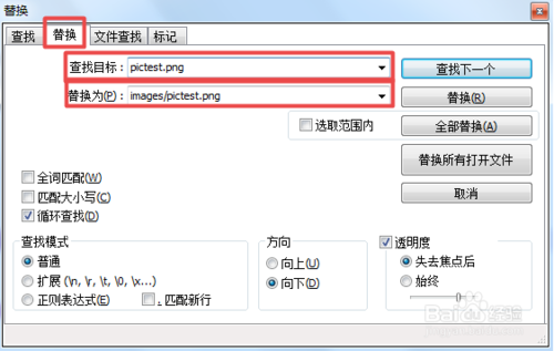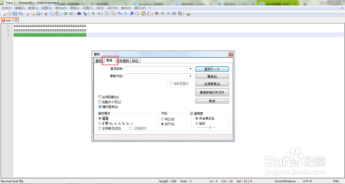 6.若是要搜索、替換或者是文件查找的話,可直接按下'Ctrl+F'快捷鍵,然后根據(jù)需要選擇查找、替換、文件查找等。
