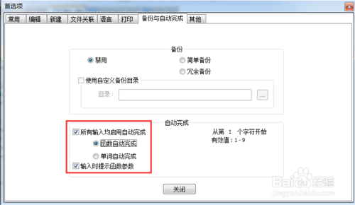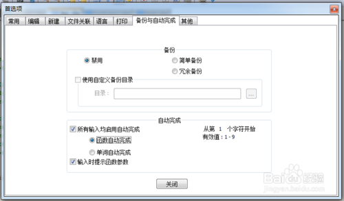 2.打備份和自動(dòng)完成選項(xiàng)